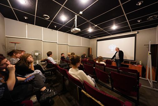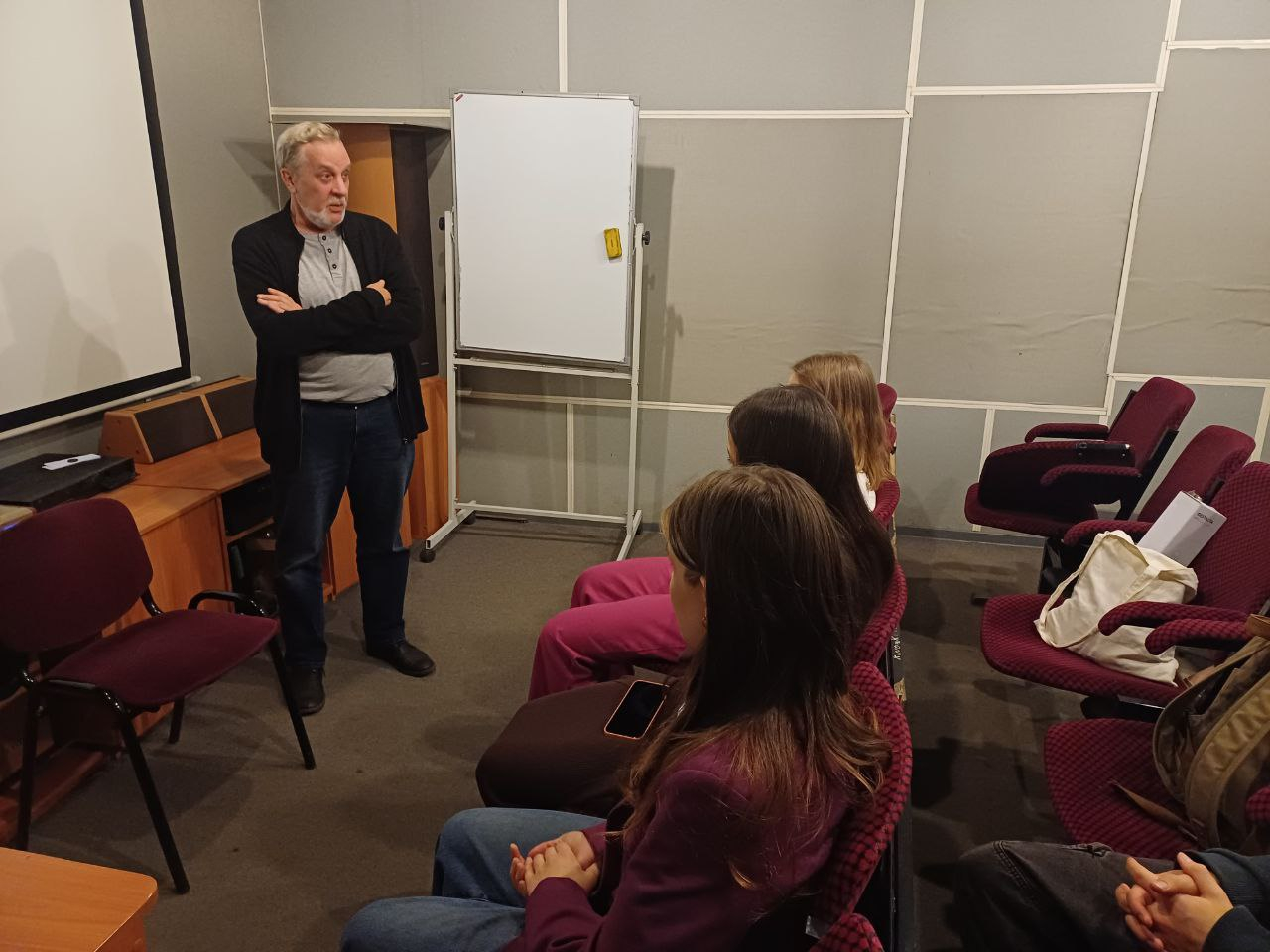Виктор Борисович Скубей рассказал о съёмке фильма, о планах по фестивальному продвижению, ответил на многие вопросы студентов о специфике производства фильмов аналогичной тематики.