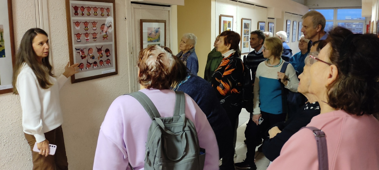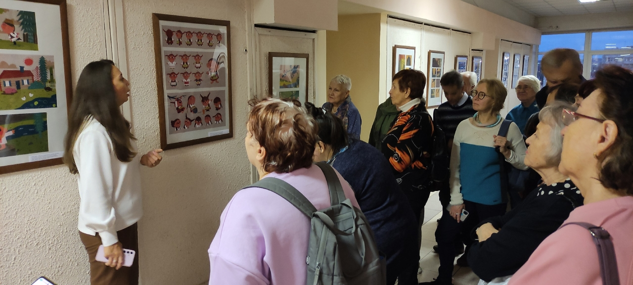 Гостям была проведена подробная экскурсия по выставке творческих работ студентов. И.о.заведующий кафедры компьютерной графики М.А.Нестерова рассказала гостям об особенностях профессии художника анимации и компьютерной графики на примере эскизов к дипломным анимационным фильмам. Поделилась информацией о том, что изучают студенты, где применяют свои знания, какие перспективы получают после окончания института. Также гостям были продемонстрированы художественные мастерские, где идет работа по созданию новых анимационных проектов. В том числе мультфильмы в технике перекладки и «сыпучки». А.В. Воронова наглядно познакомила участников мастер класса с особенностями различных технологий создания анимационных фильмов.