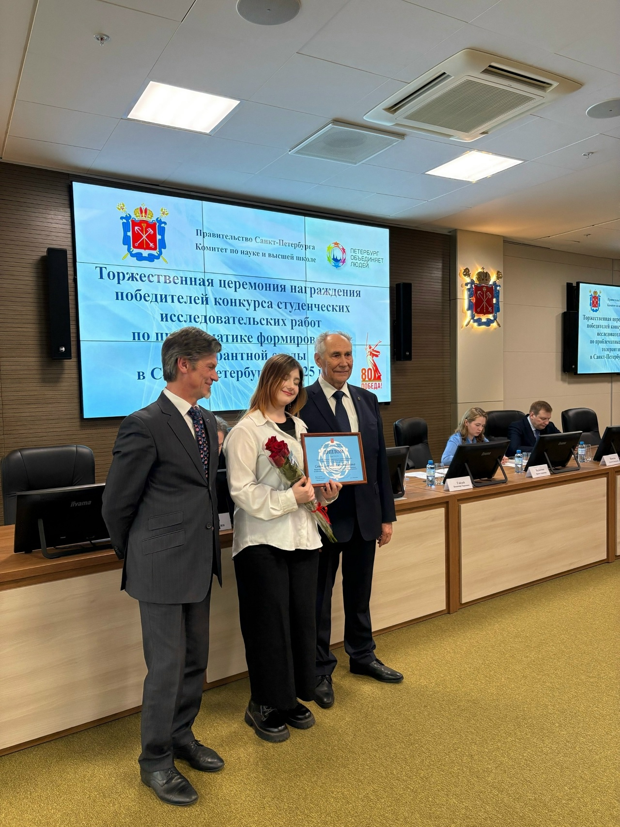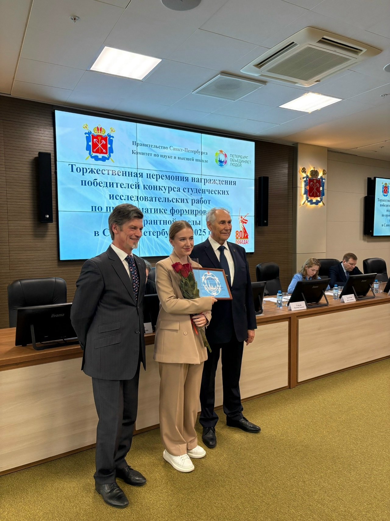 3 октября в Административно-деловом комплексе "Невская ратуша" состоялась торжественная церемония награждения победителей конкурса студенческих исследовательских работ по проблематике формирования толерантной среды в Санкт-Петербурге. В числе победителей - студенты нашей кафедры!