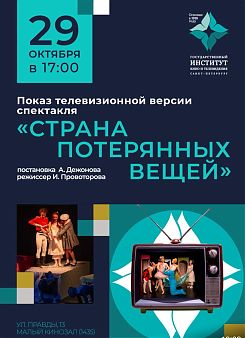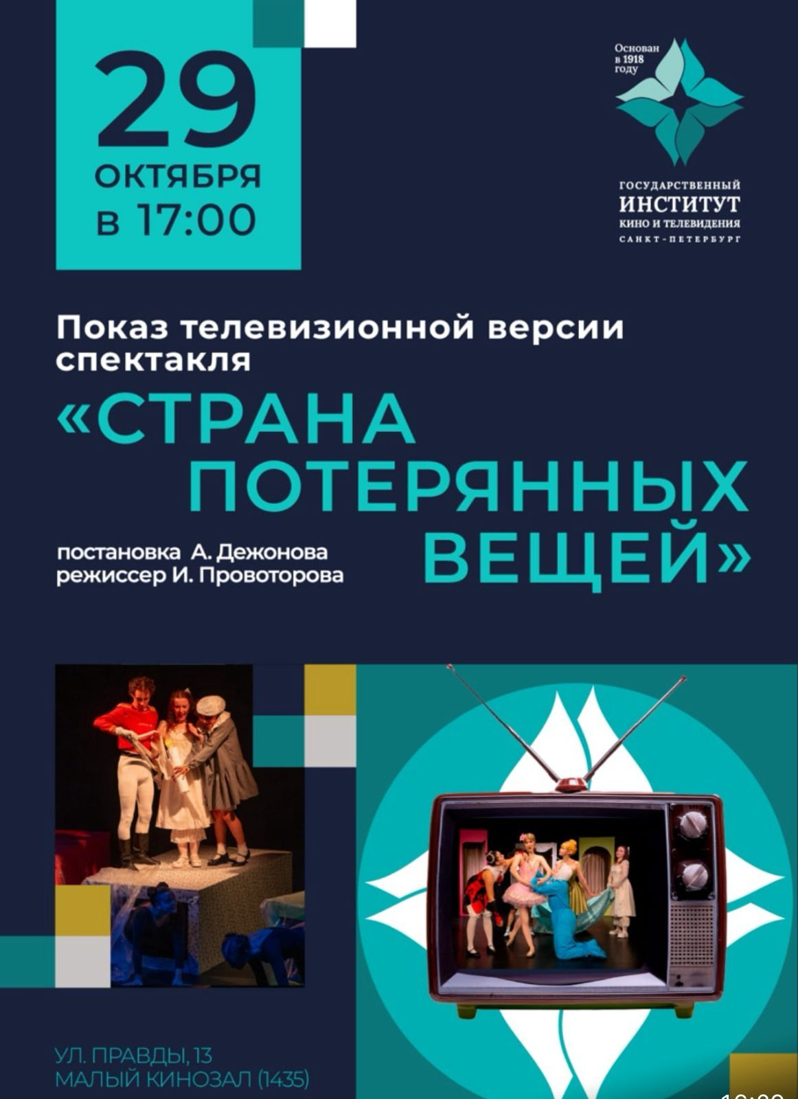 Премьерный показ телеспектакля «Страна потерянных вещей» состоялся 29 октября в малом кинозале СПбГИКиТ. На премьере присутствовали преподаватели кафедры и студенты, которые с нетерпением ждали момента, чтобы увидеть результат своей работы. Волнение и радость переполняли сердца всех участников, ведь это был не просто показ, а кульминация месяцев труда и творчества.