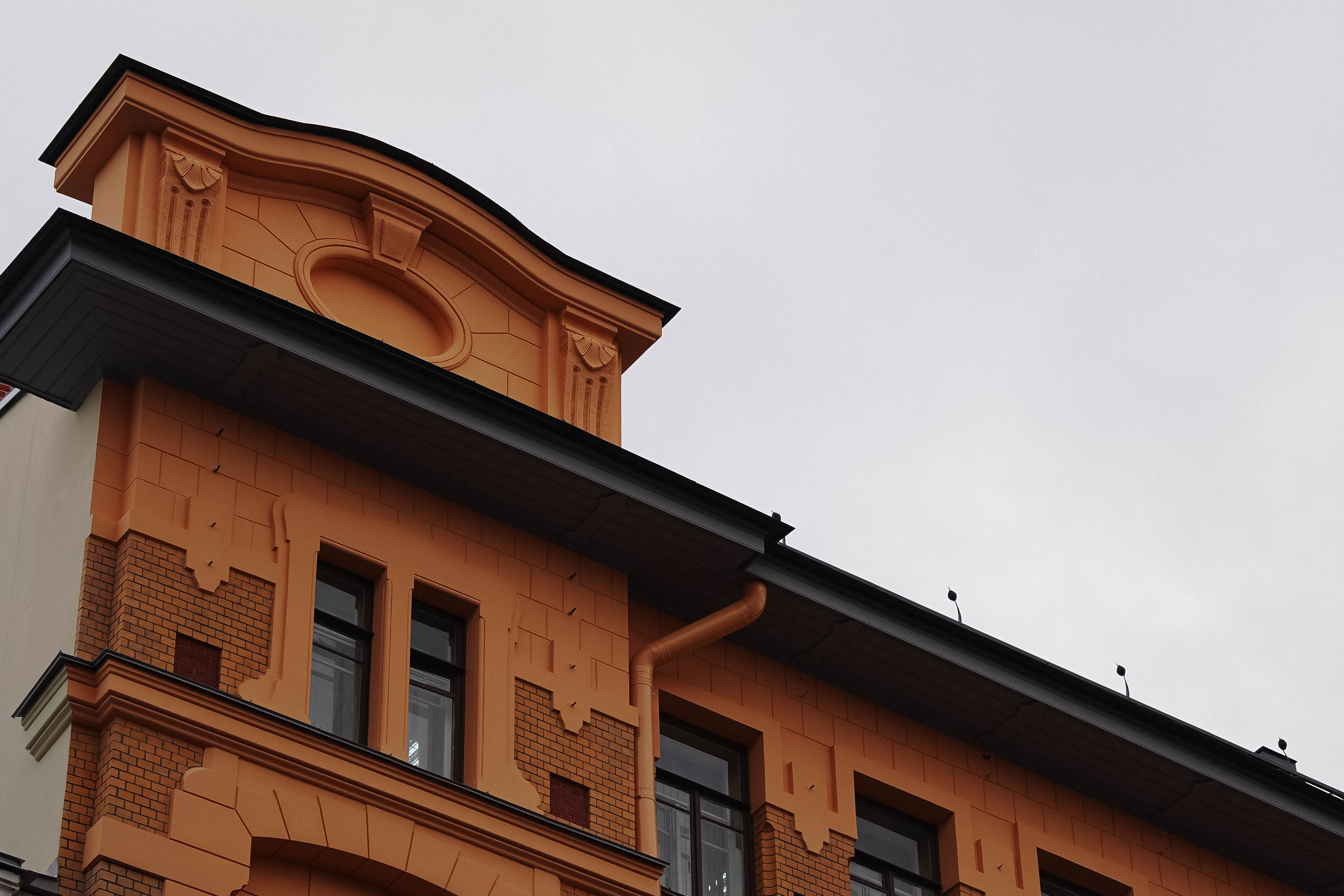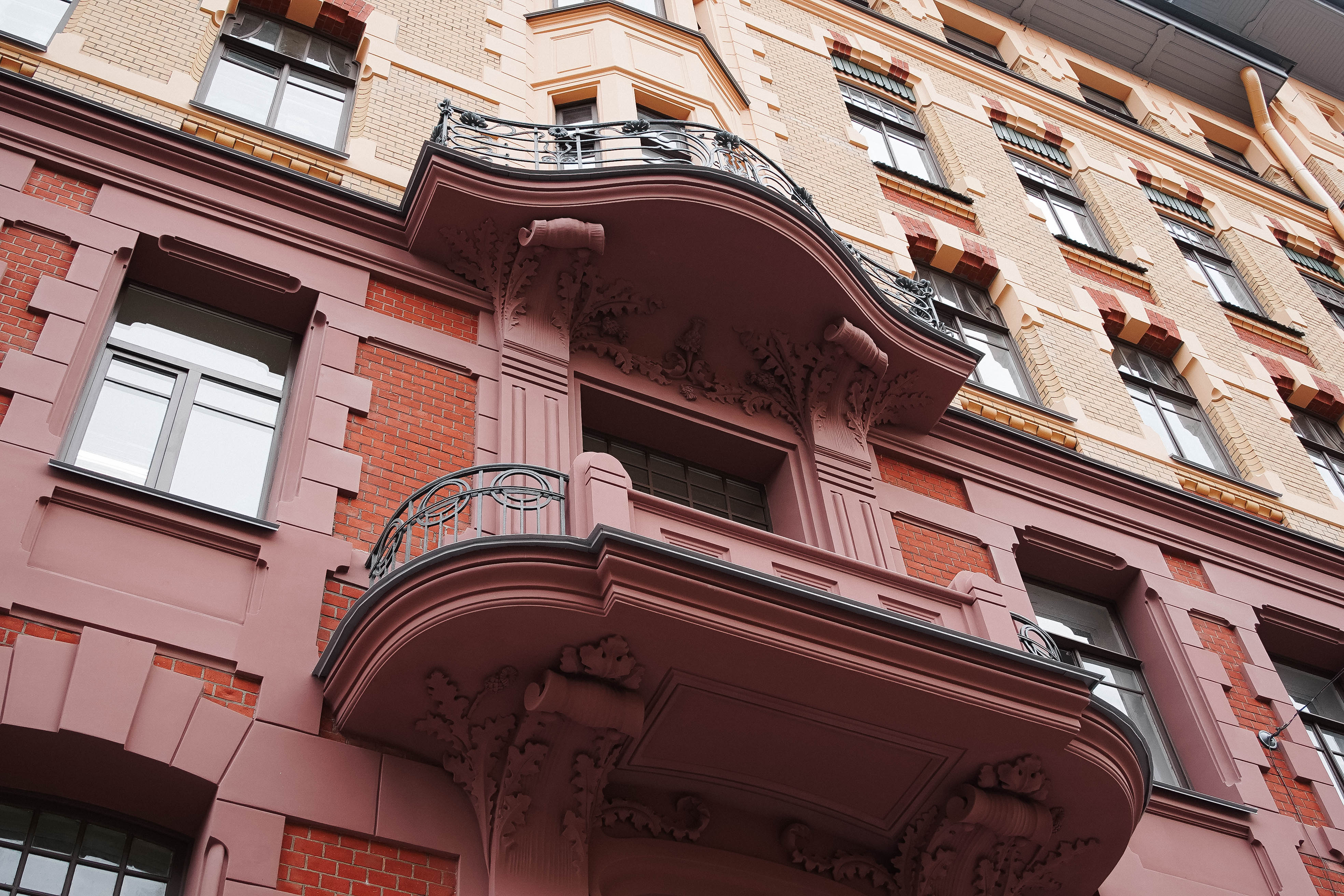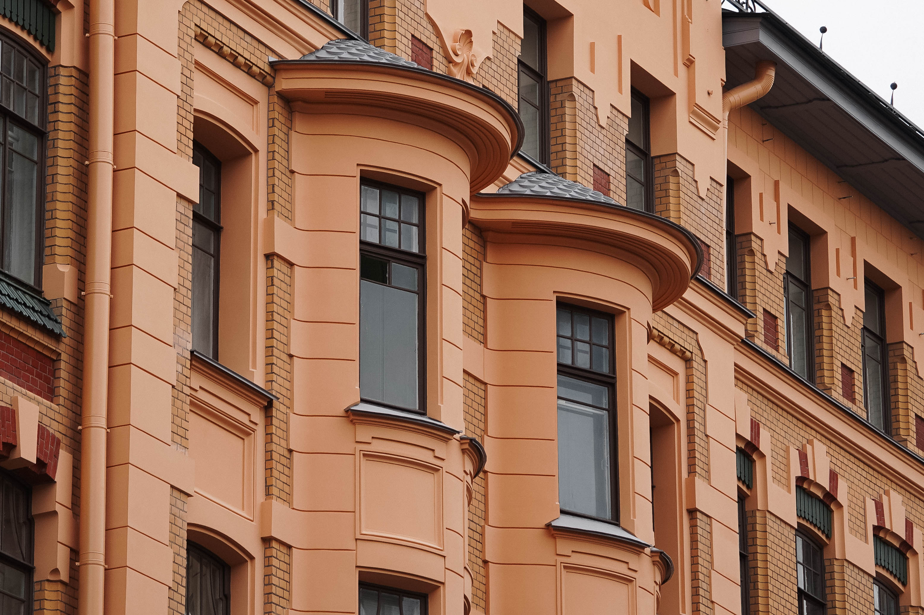 При реставрации специалисты КГИОП строго следили за тем, чтобы здание сохранило свой исторический облик: оригинальные пропорции, фактуру отделки и характерные для модерна линии оконных проёмов.