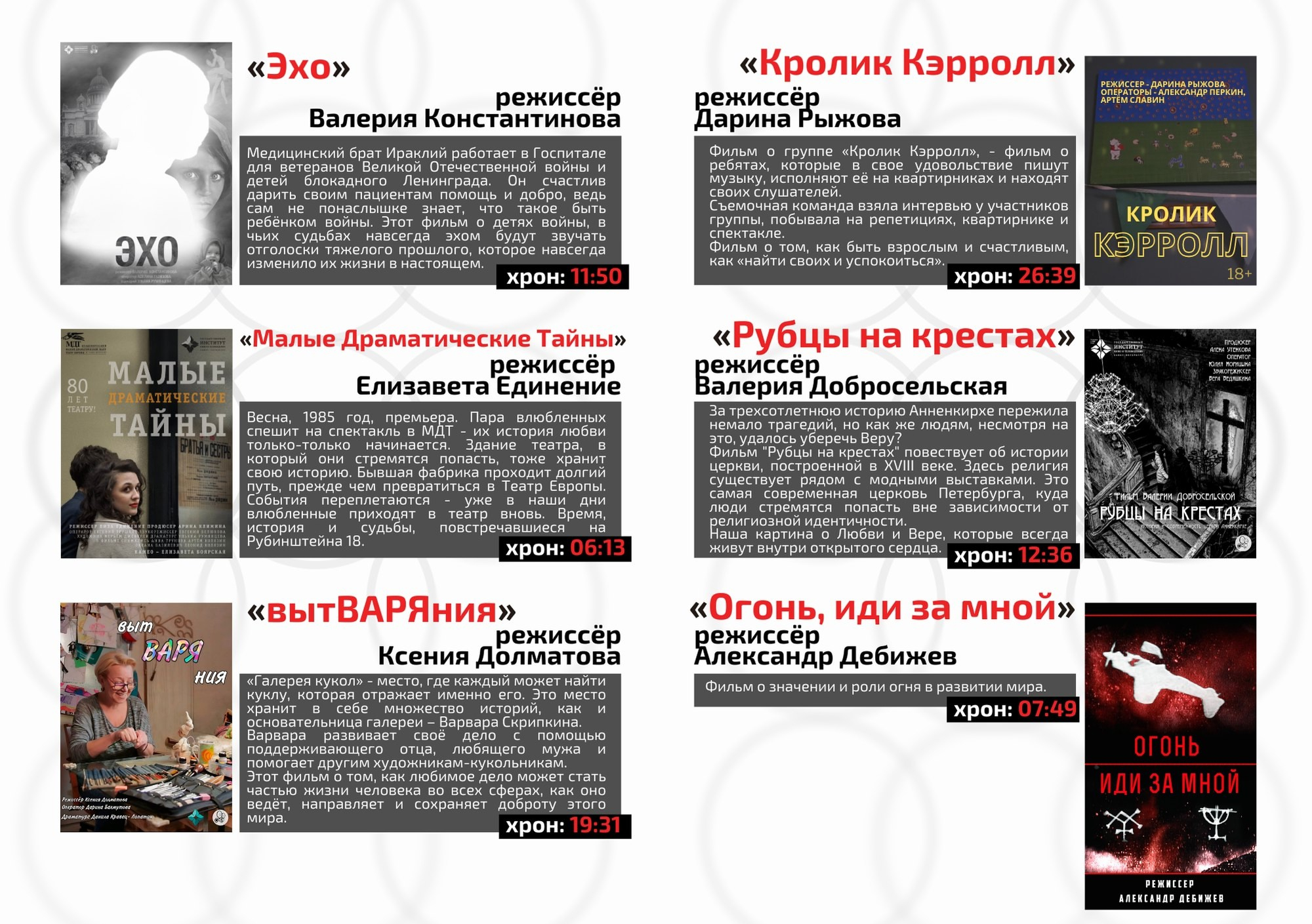 Впечатлило и тематическое многообразие фильмов: фильмы-портреты, истории архитектурных объектов, музыкальные и монтажные фильмы.