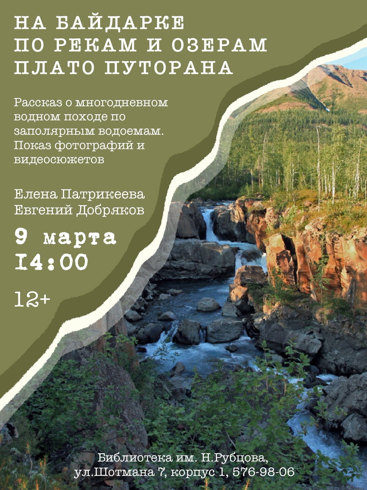 9 марта в библиотеке имени Николая Рубцова состоялась встреча с туристами-водниками Еленой Патрикеевой и Евгением Добряковым.Елена и Евгений — давние друзья библиотеки. Они много лет занимаются водным туризмом и каждый год приходят, чтобы поделиться своими впечатлениями от походов.