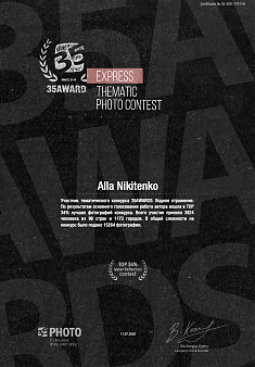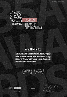 Алла Викторовна так же была отмечена жюри: её фотоработы вошли в топ 6% конкурса «Красный+синий» и топ 34% лучших снимков конкурса «Водное отражение».