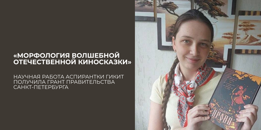 Аспирантка кафедры драматургии и киноведения ГИКИТ Ирина Кузнецова получила грант Правительства Санкт-Петербурга за научную работу «Морфология волшебной отечественной киносказки».