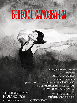 5 сентября - творческая встреча «Бенефис самозванки» в честь юбилея доцента кафедры драматургии и киноведения Анны Альбертовны Тугаревой