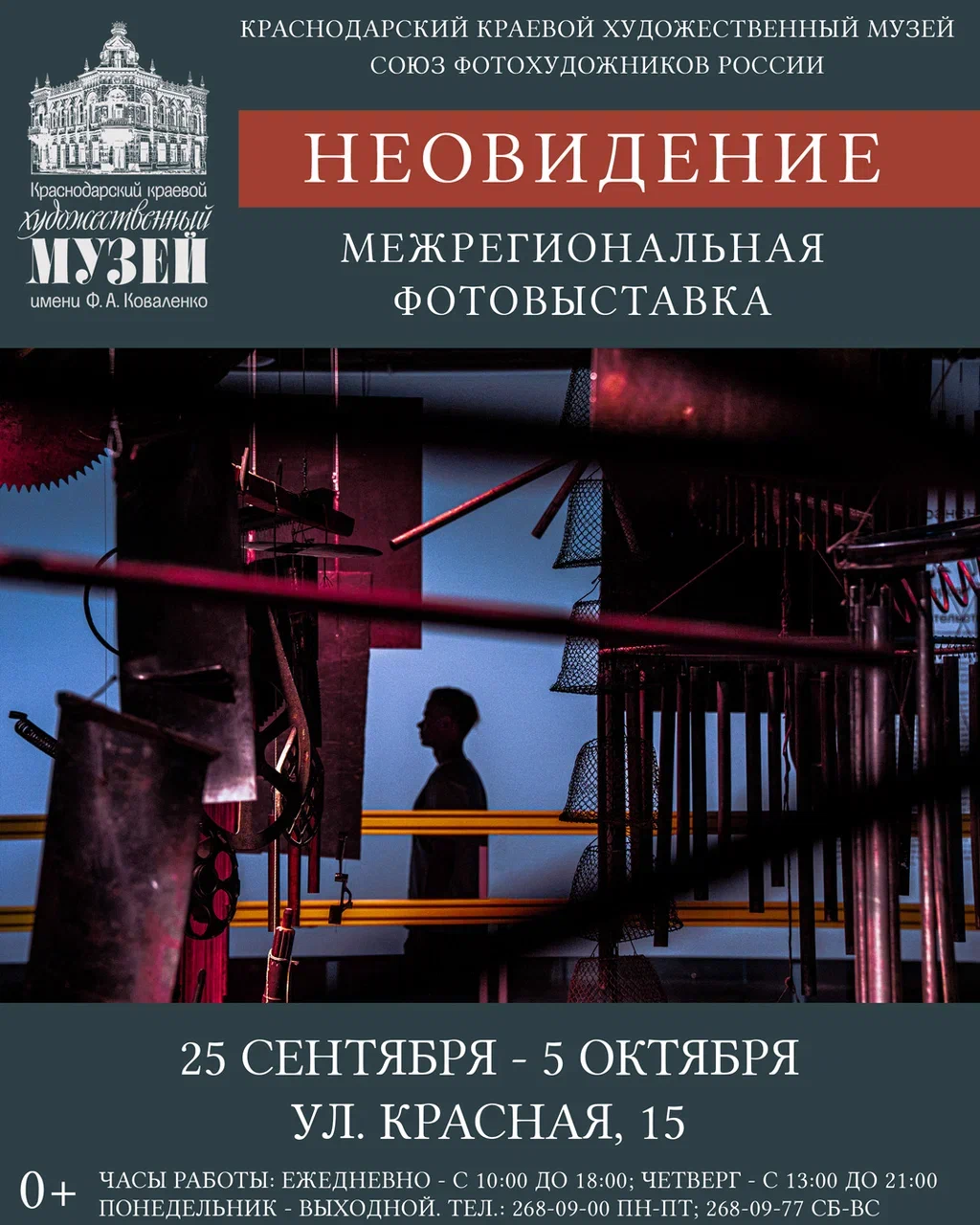 С 25 сентября по 5 октября в Краснодарском краевом художественном музее проходит межрегиональная выставка «Неовидение». В экспозиции - более 100 работ, которые представлены в Краснодаре впервые. Среди авторов — как признанные мастера из Союза фотохудожников России, так и талантливые молодые авторы из разных городов страны.