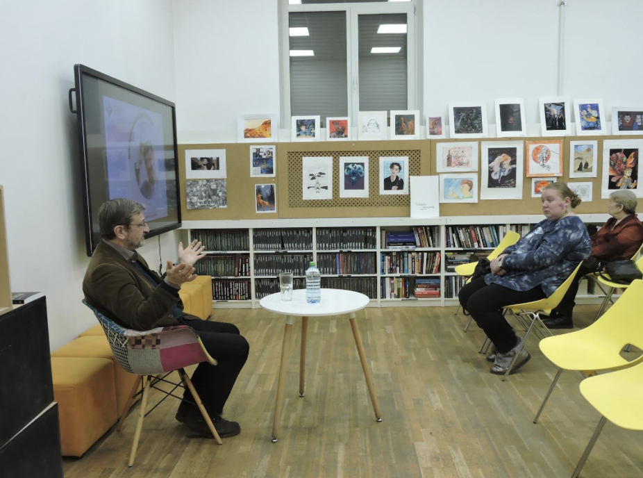 12 сентября в Библиотеке Роста и Карьеры (Московский просп. 150) состоялась встреча и лекция доцента кафедры ФиНХК СПбГИКиТ Николая Макарова. «Документальное кино России: История и современность».