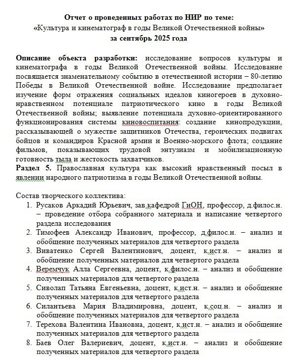 НИР по теме: «Культура и кинематограф в годы Великой Отечественной войны»