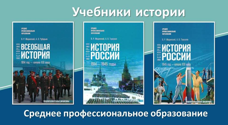 - Мединский, В. Р. История. Всеобщая история 1914 год - начало XXI века : учебник для СПО / В. Р. Мединский, А. О. Чубарьян ; Минпросвещения России. - 2-е изд., стер. - Москва : Издательский центр "Академия", 2025. - 496 с. : ил. - ISBN 978-5-0054-3255-1.