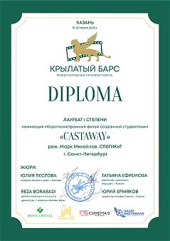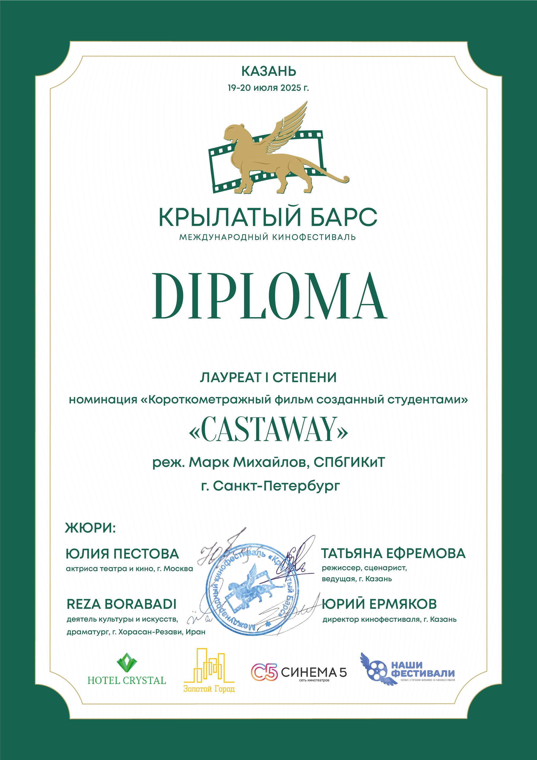 Фильм «Castaway» режиссёра Марка Михайлова, мастерская Антона Сиверса и Татьяны Мельниковой, стал лауреатом I степени!