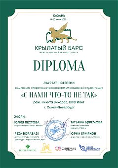 Фильм "С нами что-то не так", режиссёра Никиты Вихарева, мастерская Артёма Антонова, стал лауреатом II степени!