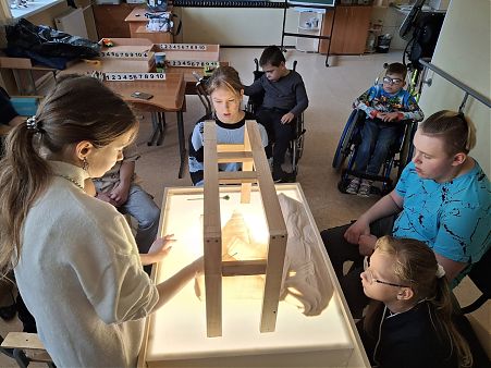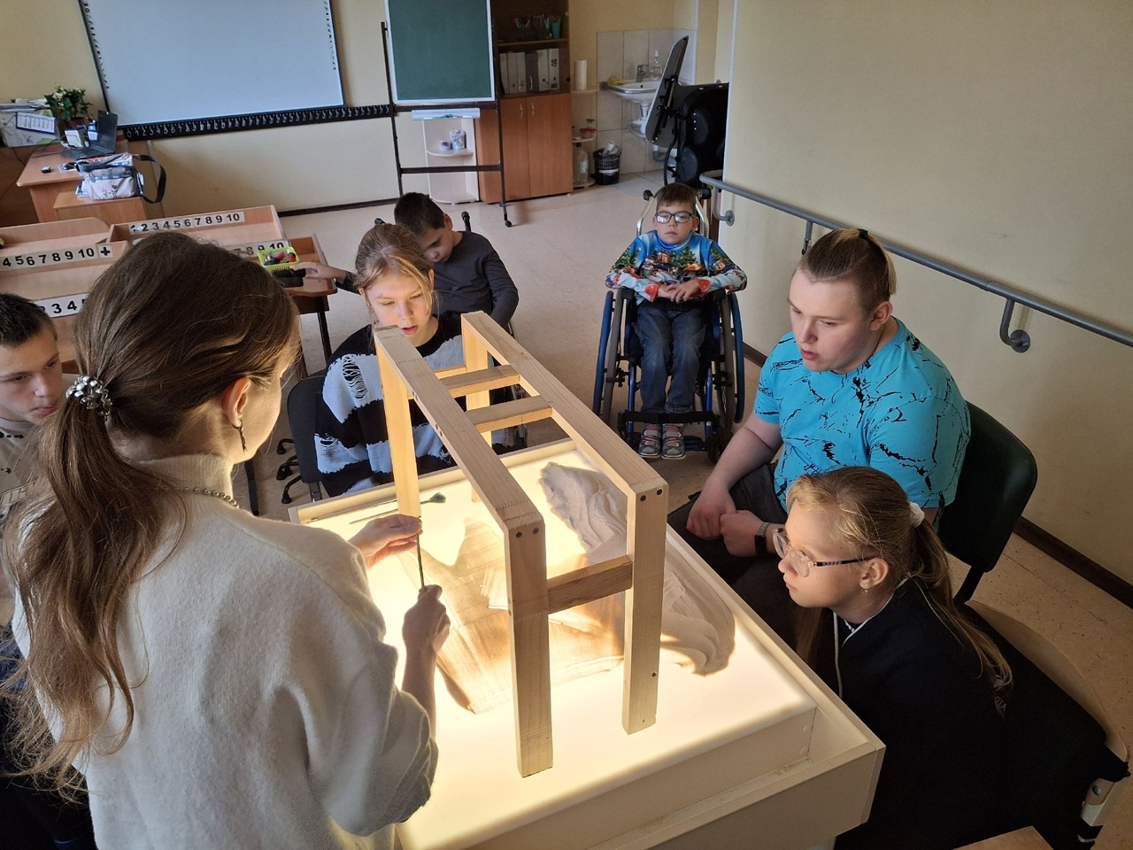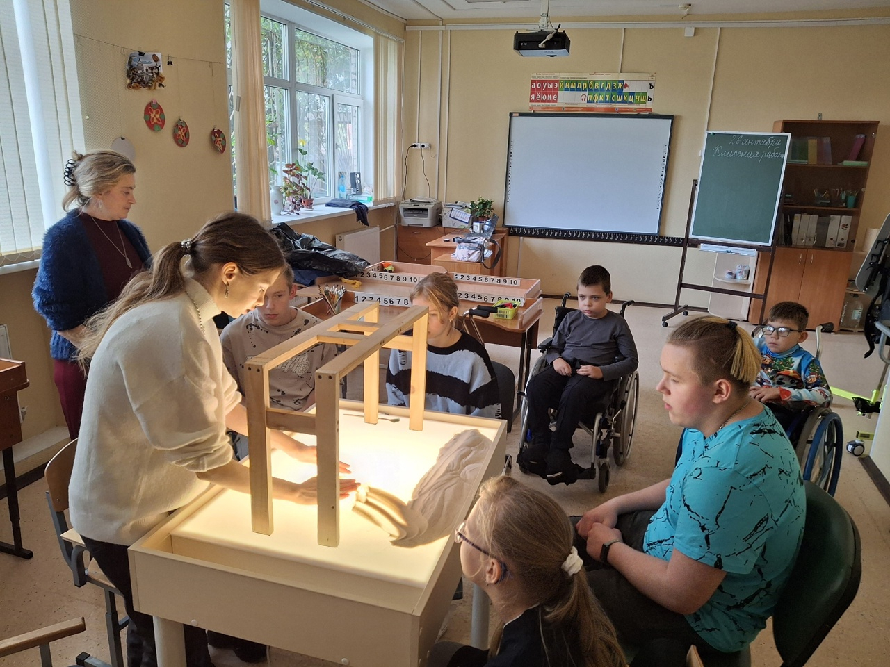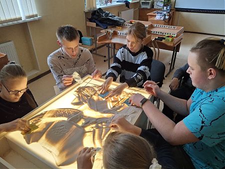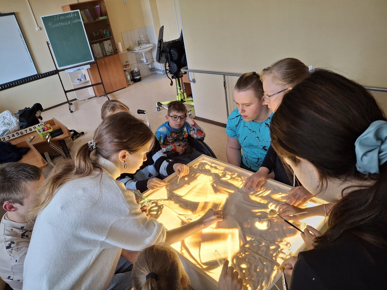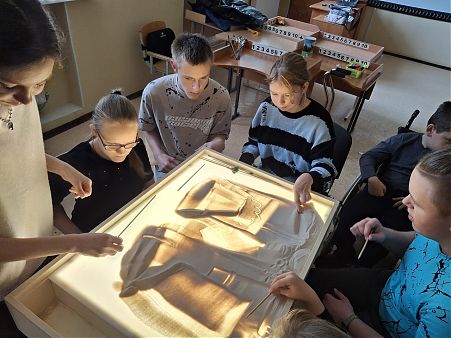 26 сентября 2025 года Вв школе №627, где учатся ребята с ограниченными возможностями опорно-двигательного аппарата, состоялось благотворительное мероприятие - мастер класс по секретам песочной анимации, организованный при участии доцента кафедры компьютерной графики и дизайна М.А.Нестеровой. Этот мастер-класс, проведенный студенткой 5 курса специальности "Графика" С.Саблиной стал первым из запланированной договором о творческом сотрудничестве серии мероприятий. Ребята познакомились с основными материалами, инструментами и техникой песочной анимации, сделали под руководством своего наставника первые шаги, изобразив осенний пейзаж. В дальнейшем, развив и укрепив полученные сегодня навыки ребята будут делать первые шаги в песочной анимации, в чем им будут помогать наши студенты.