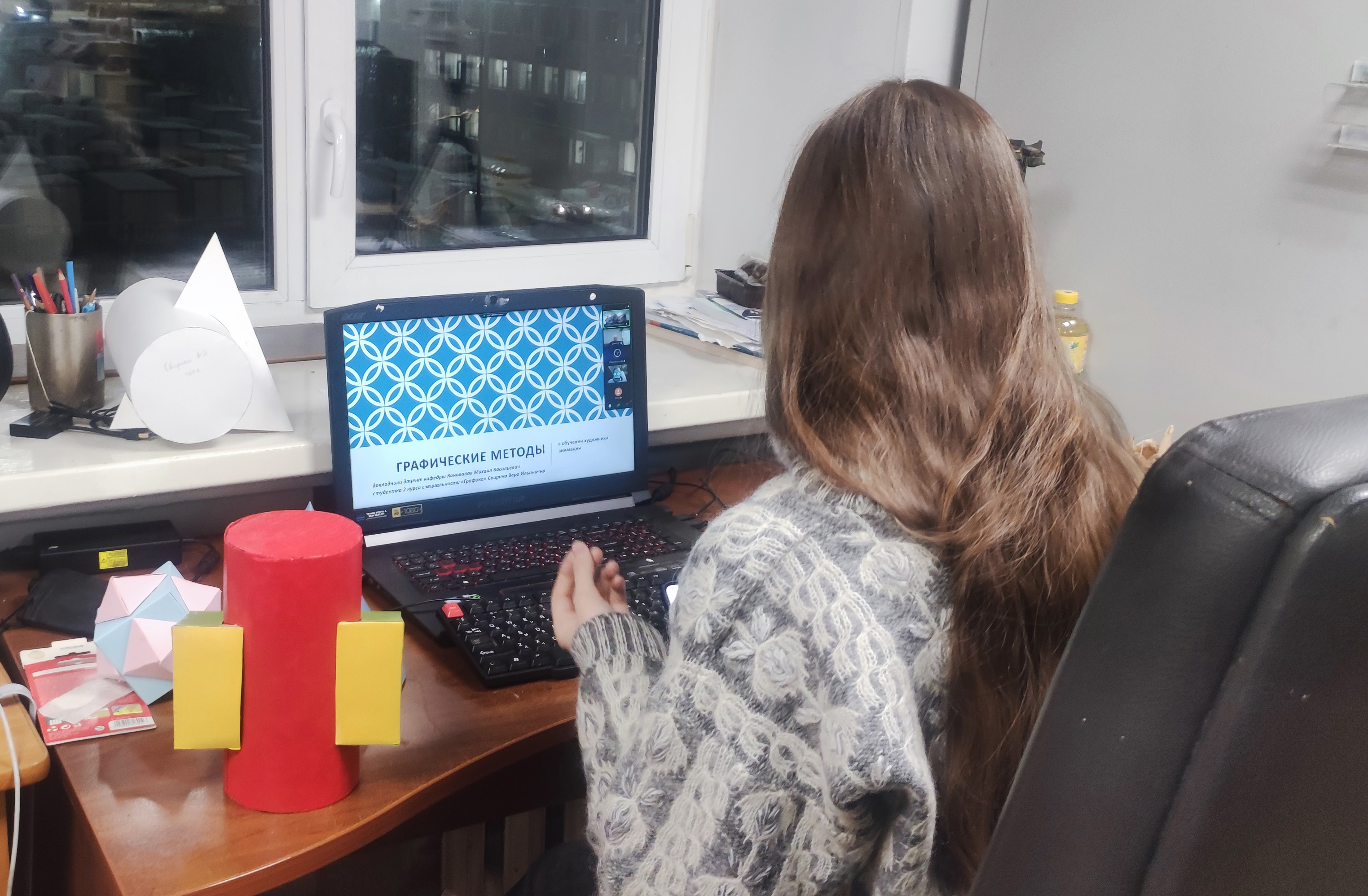 Доцент кафедры анимации и медиадизайна Коновалов М.В. и студентка специальности "Графика" Свирина Вера выступили с докладом "Графические методики в подготовке художника анимации и компьютерной графики"