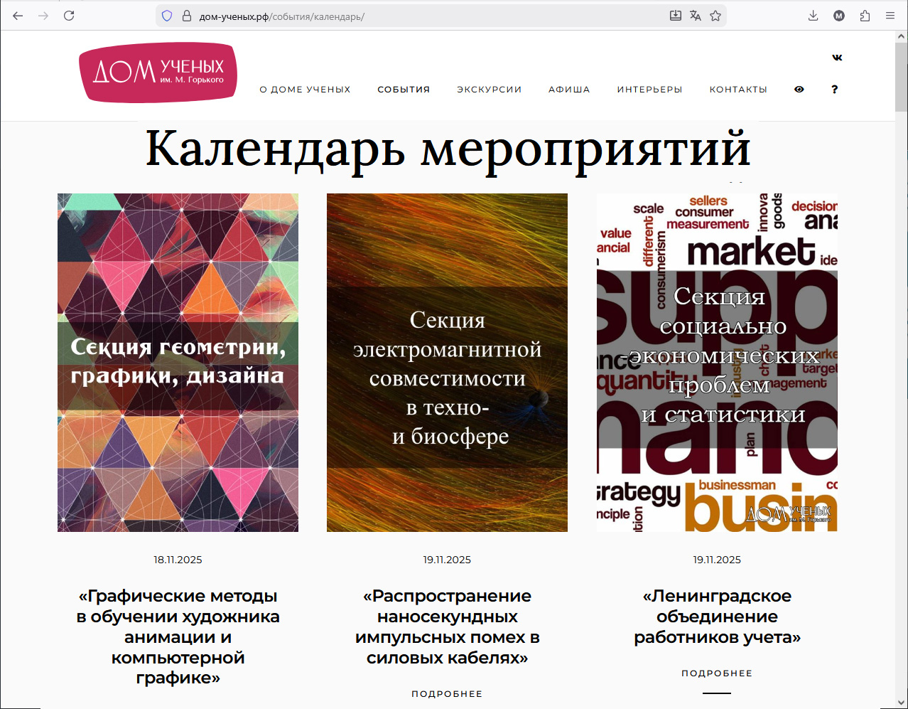 18 ноября состоялось заседание секции "Графика и дизайн" Санкт-Петербургского Дома учёных РАН им. Горького, на котором доцент кафедры анимации и медиадизайна Коновалов М.В. и студентка 2 курса специальности "Графика" Свирина Вера выступили с докладом "Графические методики в подготовке художника анимации и компьютерной графики". Особенно отмечена практическая направленность дисциплины и необходимость академической основы для дальнейшего развития будущего профессионала, а также участие студентов кафедры в городской Олимпиаде по начертательной геометрии под руководством преподавателей кафедры М.В.Коновалова и Е.Ю.Патрикеевой.