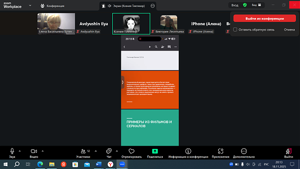 Предметом обсуждения онлайн-конференции, проведенной 18.11.2025 в группе 1221б, стала социально-культурная специфика современного дискурса и ее выражение в кинопереводе.
