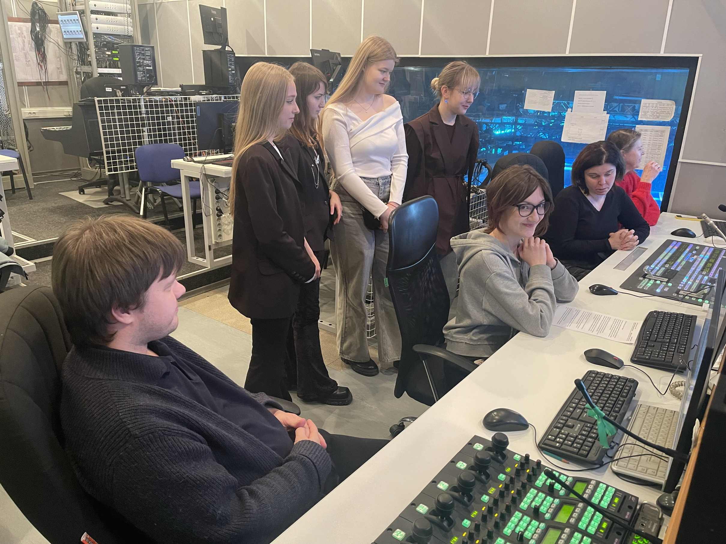 23 ноября 2025 года на Телеканале «Санкт-Петербург» состоялся мастер-класс режиссера информационного вещания Серовой Марии для студентов направления подготовки «Телевидение». Обсуждались традиционные вопросы – сложно ли работать режиссером на прямых эфирах, какие навыки необходимо в себе развивать, что входит в обязанности ассистентов режиссера. В мастер-классе также приняли участие преподаватель нашего института Алёшин Тимофей Сергеевич, который работает инженером в этой студии, и выпускница 2025 года направления подготовки «Телевидение» Свешникова Виктория, которая уже работает ассистентом режиссера на прямых эфирах.