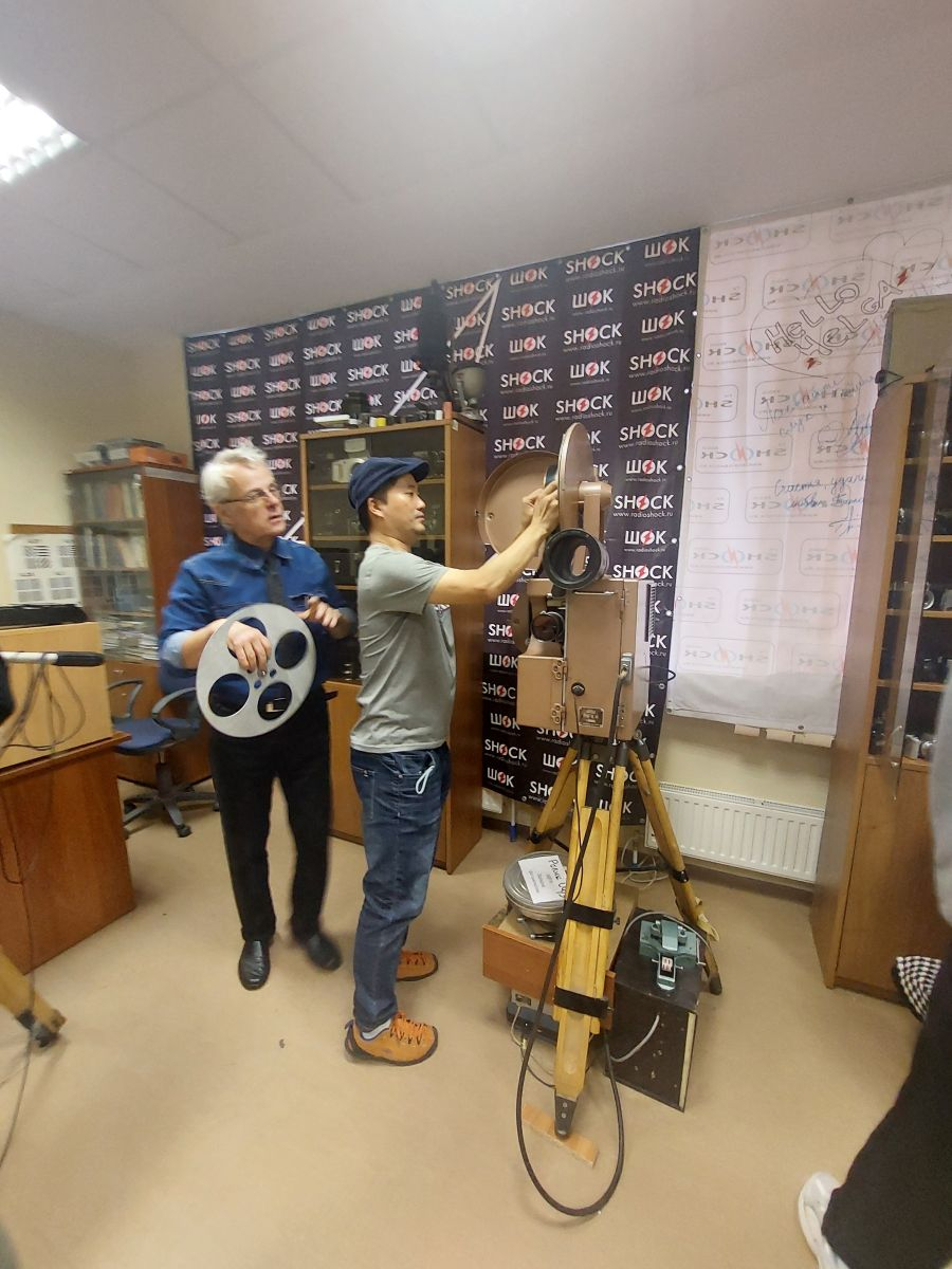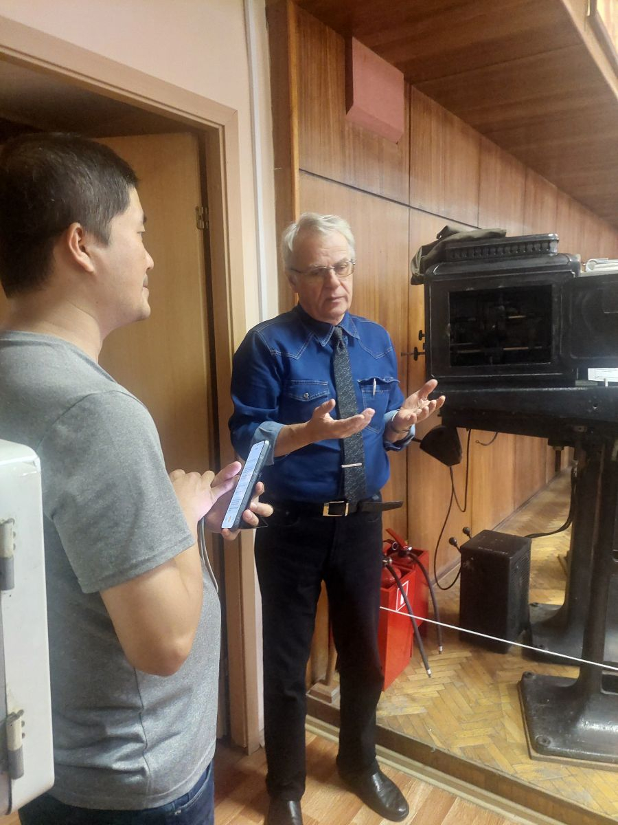 Преподаватели Гудинов К.К., Егорова Н.С. и Веселова С.В. рассказали студентам основные этапы разработки фотоаппаратуры и кинопроекционных аппаратов, их модернизацию, пояснили некоторые принципы работы форматной фотокамеры (на которую студенты смогли сделать фото с помощью мобильного телефона), нескольких моделей «пленочных» фотоаппаратов, звукозаписывающей аппаратуры. Затем студенты самостоятельно заправили кинопленку в проекционный аппарат и с помощью старшего преподавателя Гудинова К.К. продемонстрировали отрывок из кинофильма с этой кинопленки. Перемоткой кинопленки после кинопоказа также занимался один из студентов. Студенты высказали мысль, что работа киномеханика в прошлом была довольно сложной и тяжелой.