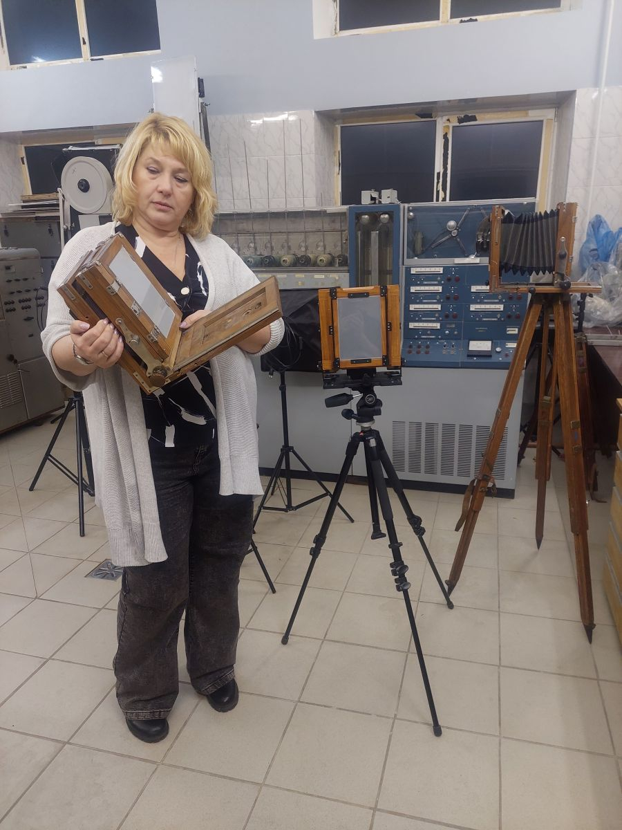 Студенты интересовались аспектами работы с форматной фотокамерой и возможностями сделать фото на форматную пленку, активно задавали вопросы. Особенно студентам понравилось изучать различные модели фотоаппаратов, им понравились и миниатюрные фотоаппараты, и большая старинная фотокамера с раздвижным «мехом».