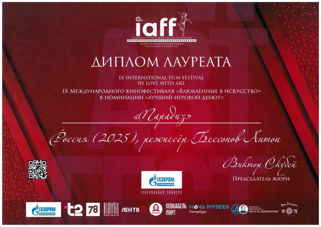 Фильм "Парадиз", режиссёра Антона Бессонова, мастерская Дмитрия Месхиева и Алексея Злобина, победил в номинации "Игровой дебют"!