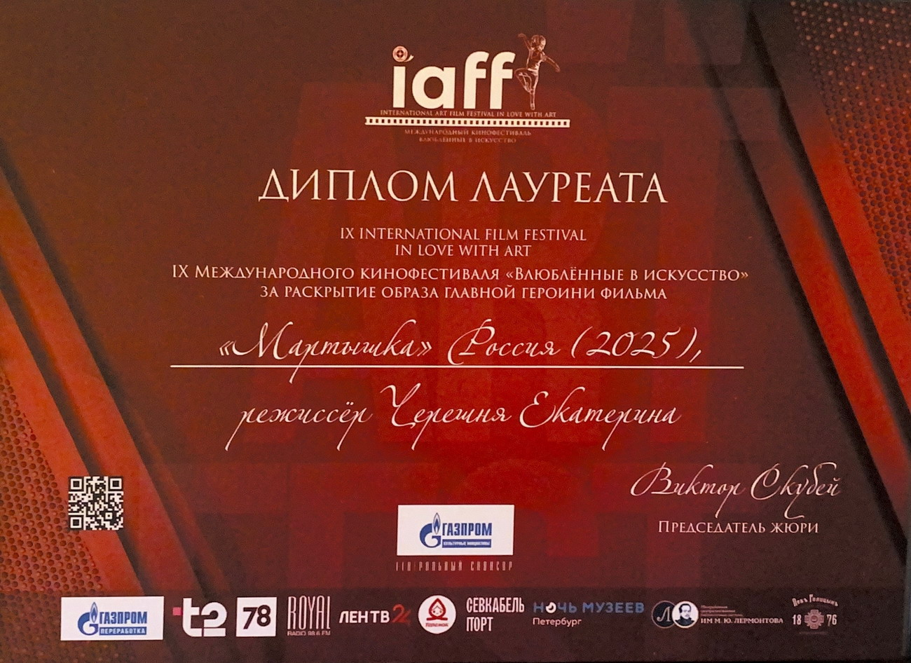 С 12 по 15 ноября 2025 года в Санкт-Петербурге прошёл IX Международный кинофестиваль «Влюблённые в искусство», на котором фильмы наших студентов стали лауреатами.