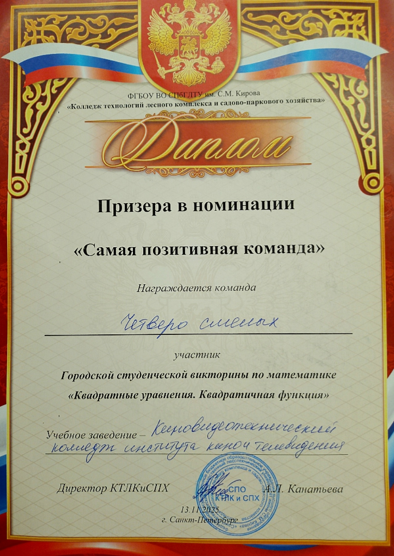 13 ноября на базе Колледжа технологий лесного комплекса и садово-паркового хозяйства состоялась традиционная городская студенческая викторина по математике "Квадратные уравнения. Квадратичная функция."
