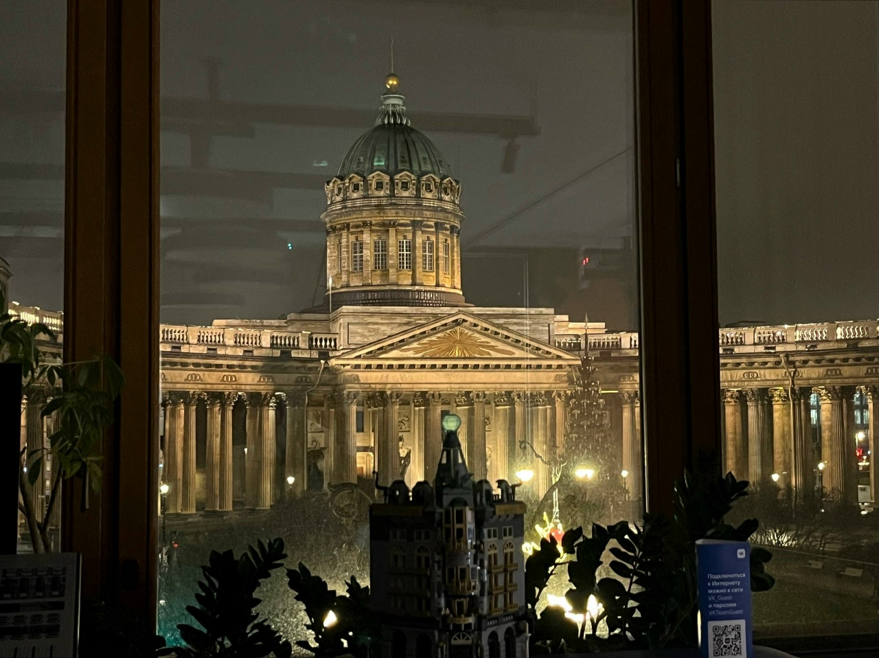 Александр показал ребятам офис, рассказал о специфике работы в офисе, про рабочие задачи, которые ставят перед молодыми специалистами. В конце экскурсии гостей отвели в купол, откуда открывается великолепный вид на город, погрузили в историю здания и самого офиса.