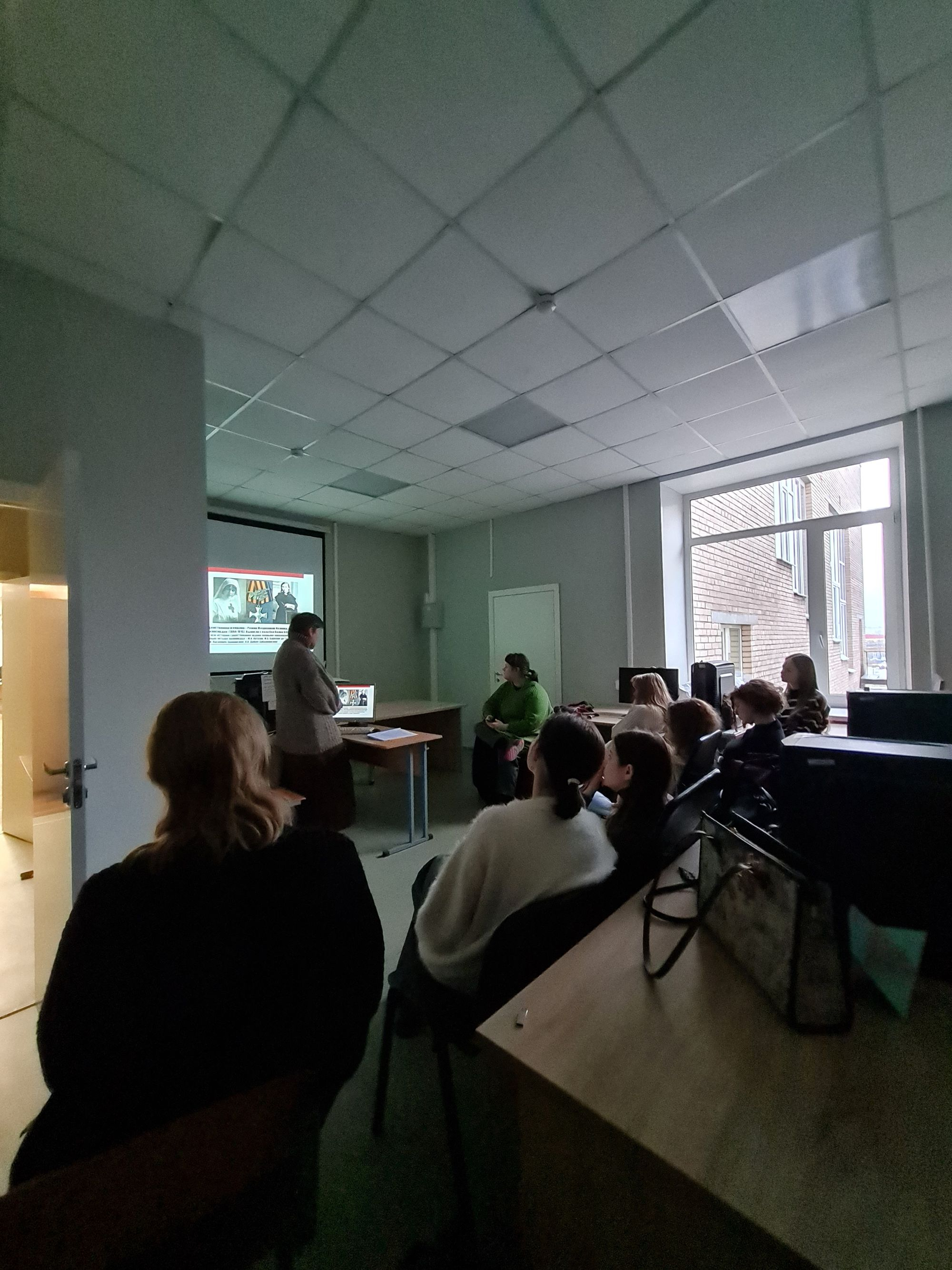 На кафедре анимации и медиадизайна студентам была показана презентация об истории этой памятной даты, связанной с учреждением в России ордена Святого Георгия Победоносца (в 1796 году). Рассказано о кавалерах этого ордена, в частности – о единственной женщине, получившей эту награду в годы Первой Мировой войны (посмертно) за подвиг сестры милосердия – Римме Ивановой. О традициях советского аналога ордена Святого Георгия – ордене Славы. В беседе студентам было предложено вспомнить героев, чьи подвиги им наиболее памятны: прозвучали имена героев Великой Отечественной войны – Зои Космодемьянской, Алексея Гарькавого, Владислава Хрустицкого; советских военачальников маршала Г. К. Жукова и маршала В. И. Чуйкова. Из героев древней истории Руси – Святого благоверного князя Александра Невского. Студенты вспомнили и своих родственников, принимавших участие в Великой Отечественной войне. В беседе была затронута и тема современности, вспомнена крылатая фраза «из одного металла льют медаль за бой, медаль за труд».