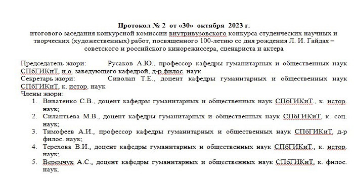 Творческий конкурс студенческих работ, посвященный 100-летию со дня рождения Л.И. Гайдая