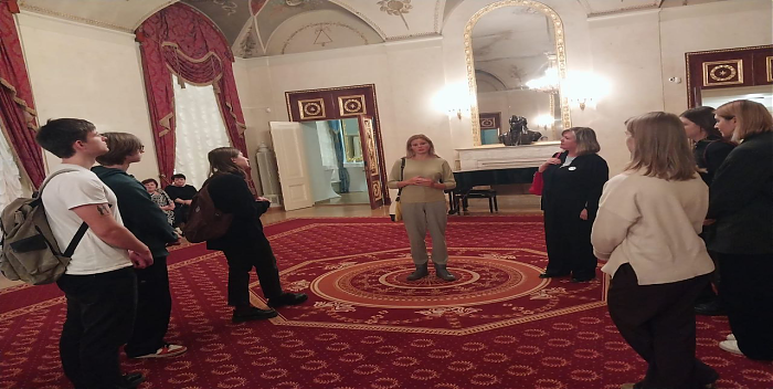11 октября студенты 1527 группы вместе с куратором Бегун Е.Н. совершили удивительное путешествие в сердце русского театра — легендарную Александринку. Программа визита была насыщенной и глубокой: сначала экскурсия «Театральный пролог», а затем просмотр спектакля «Блаженная Ксения. История любви» в постановке Валерия Фокина.