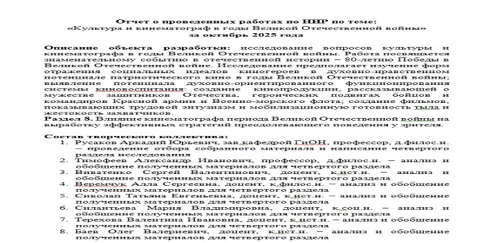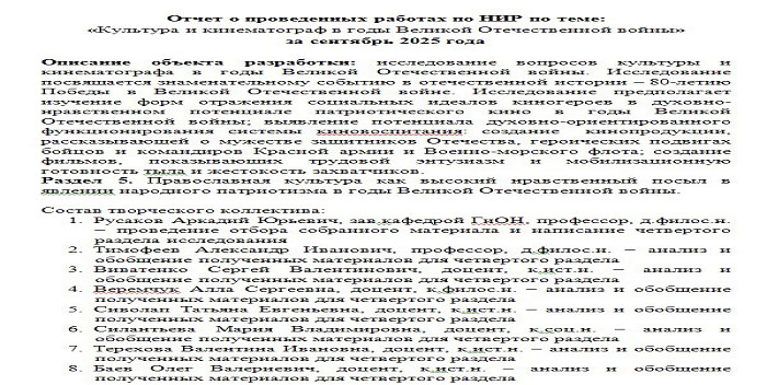 НИР по теме: «Культура и кинематограф в годы Великой Отечественной войны»