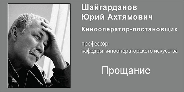 20 сентября ушел из жизни наш дорогой друг и коллега, профессор кафедры кинооператорского искусства, заслуженный деятель искусств РФ, лауреат премии Правительства РФ, кинооператор Шайгарданов Юрий Ахтямович.