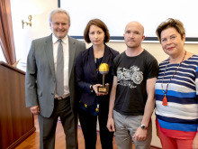 На днях в Санкт-Петербургском государственном институте кино и телевидения побывали обладатели гран-при в номинации «Кинотавр. Короткий метр» наши выпускники, киновед Михаил Архипов и драматург Ирина Уманская. Ребята встретились с ректором СПбГИКиТ, профессором, заслуженным деятелем науки РФ Александром Дмитриевичем Евменовым, который поддерживал их во время «Кинотавра» и поприветствовал в стенах альма-матер. Смущенных таким вниманием победителей поздравили уважаемые члены Ученого совета
